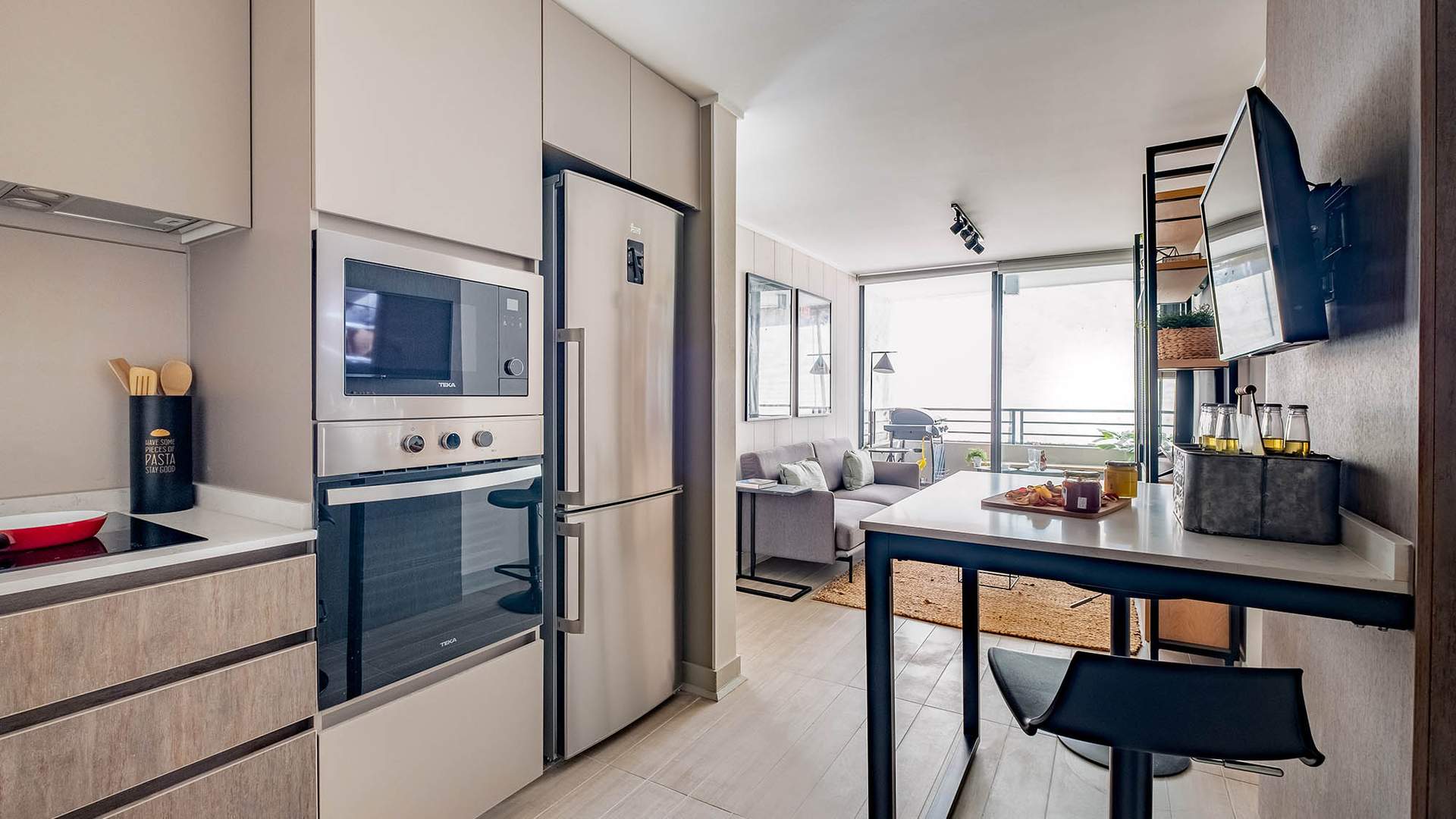 Vive el aire libre en un entorno pensado para ti. Disfruta de la naturaleza, o simplemente relájate al ritmo que quieras. Además, amplía tu espacio con nuestras áreas comunes: dos salones gourmet, dos quinchos, una piscina y un gimnasio. Los departamentos te ofrecen un gran espacio social donde la cocina, el living, el comedor apaisado y la terraza se conectan para que disfrutes en compañía de tu pareja, familia, amigos o mascota.